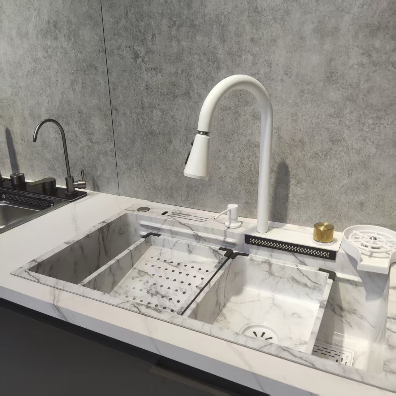 | Doppelbecken-Küchenspüle mit Holzschneidebrett | 820×480×210mm | Integriertes Schneide- und Reinigungsstation |
